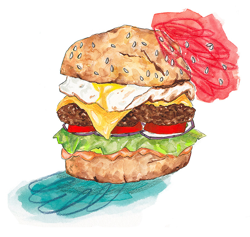 Here are afew drawings of burgers, one of my absolute favourite things to draw.