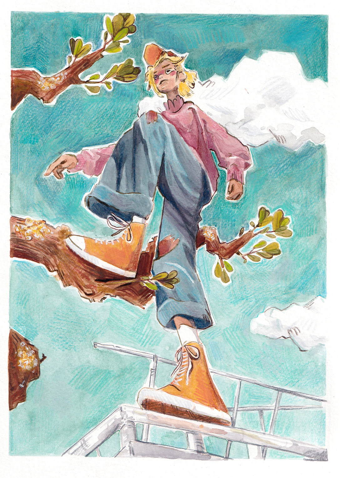 Watercolour and pencil,